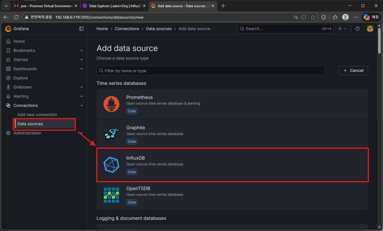 3. Proxmox와 Influxdb 연동